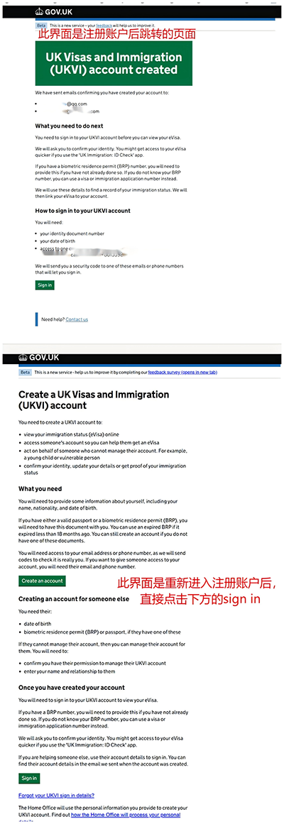 如果完成账户注册时没有跳转到sign in的界面,可以登录此链接 https://www.gov.uk/get-access-evisa 选择start now,选择签证获签时间,选择是否有签证申请号,然后点击sign in