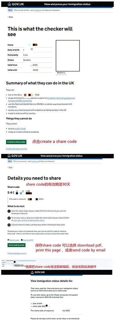 因此学生获签之后需要完成UKVI账户注册且关联eVisa,并申请share code, 以便在出入英国时证明你的移民身份。 由于Share Code 的有效期是90天,请按照自己的旅行时间合理申请share code。 如share Code过期,可再次申请。