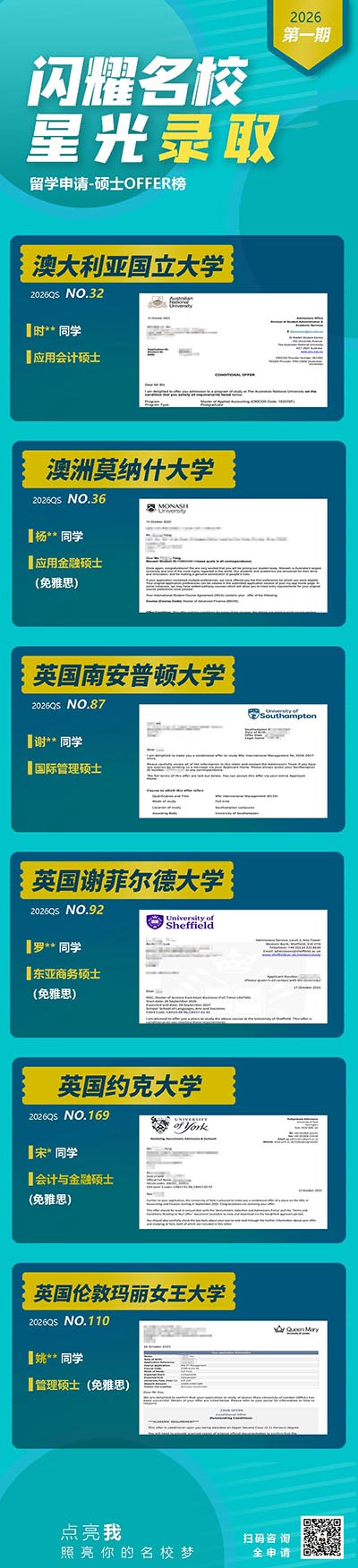 圆梦世界百强!英澳名校硕士捷报(第一期)