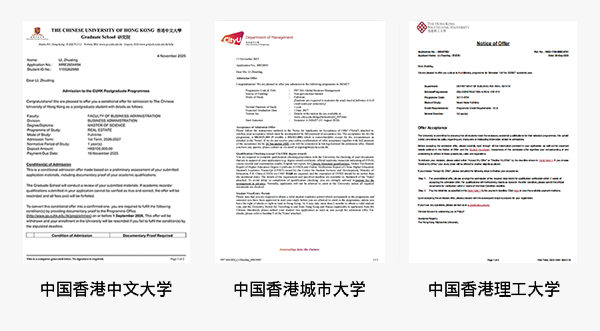 LI 同学正是考研与留学双向准备的典型案例:最初,他以 CET-6 474 分的成绩递交了中国香港城市大学的申请;后续考出雅思 6.5 分后,随即补充递交了中国香港地区其他院校的申请。目前,他已收获多所名校录取,且将于明年 1 月底至 2 月初参加中国香港大学的面试,仍有机会斩获更多优质 offer。