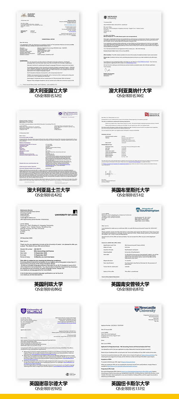 英国、澳洲硕士不设统一入学考试,录取主要看本科GPA 成绩和语言能力,达到院校要求即可直接拿到录取,公平、透明、稳定。