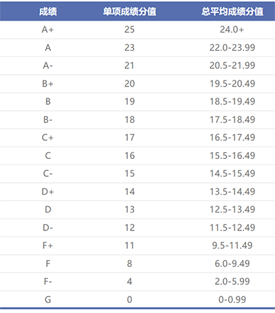 和其他院校不太相同的是,北安的成绩和最终学位成绩最后在系统中将划分为ABCDEFG等级,每个等级分别代表不同的分数,详情见下图: