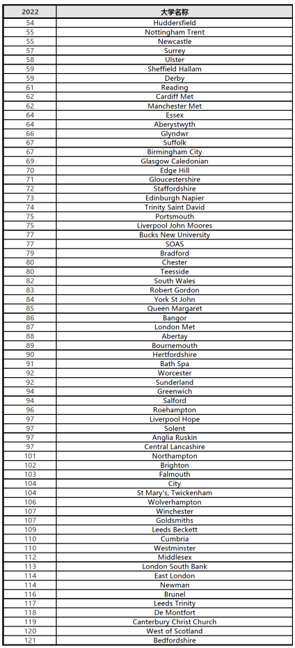 常被中国留学生申请的埃克塞特大学,利兹大学,南安普顿大学,约克大学,思克莱德大学以及阿伯丁大学均位于前20。