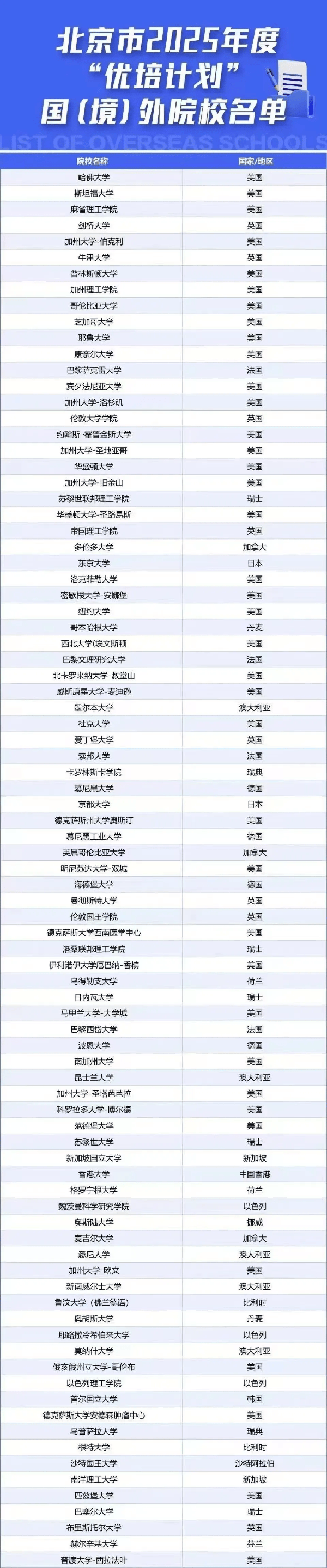 北京和上海相继发布了2025年度的选调生和“优培计划”公告。一些顶尖国外高校也被列入了“选调”“优培”名单!
