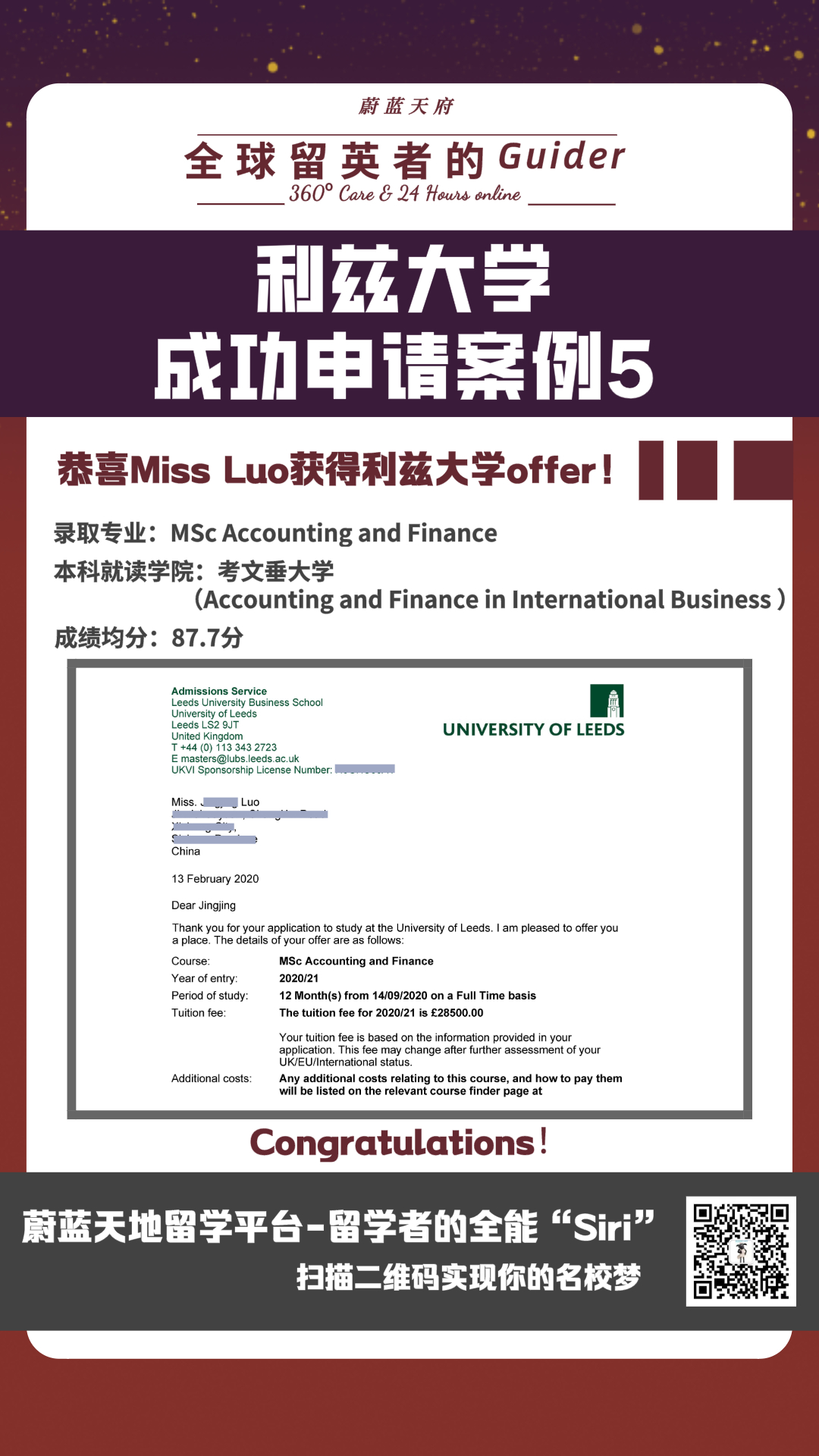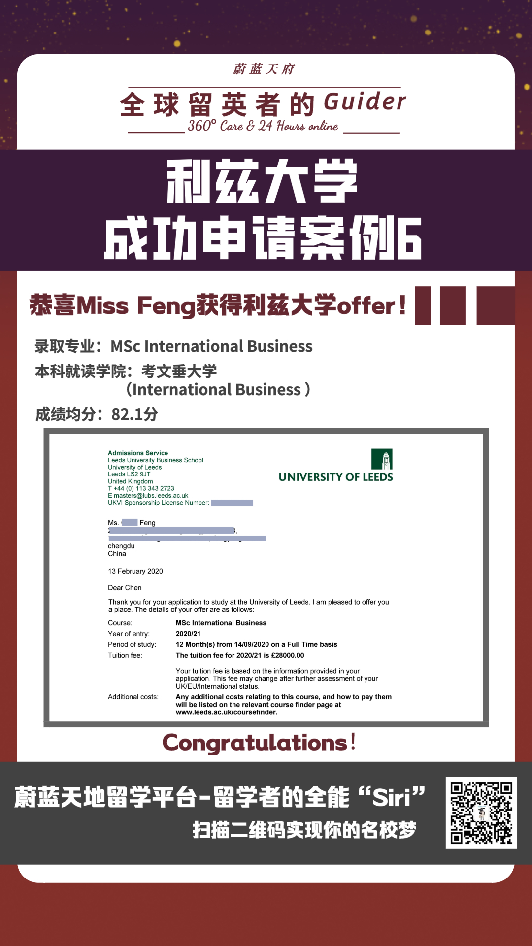 【录取捷报】Legendary!利兹大学连下10封offer!(内含福利)
