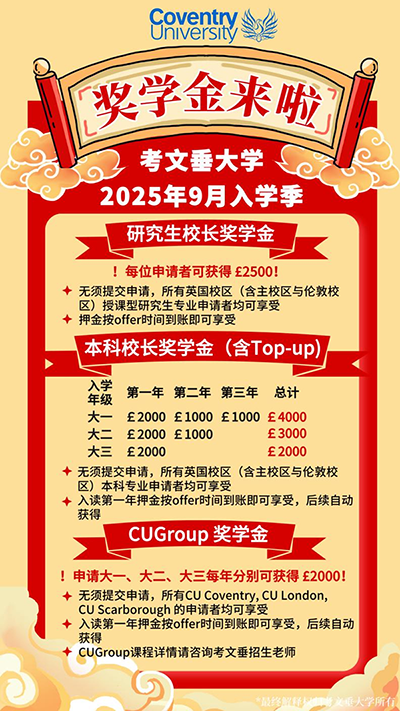 开学第一周,英国考文垂大学奖学金政策新鲜出炉!