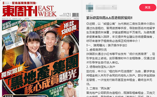 该诈骗集团利用社交平台发布虚假房源,以低价折扣吸引受害者提前支付全年租金,涉案金额超过1300万港元,受害人数超过150人,其中超过六成是“港漂”学生。