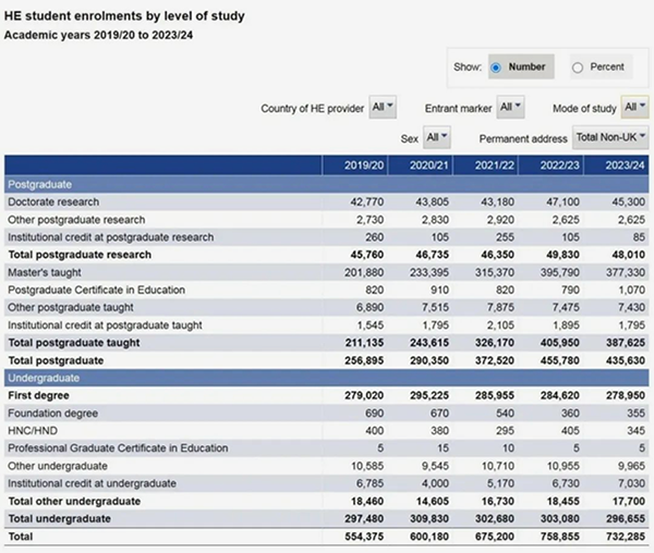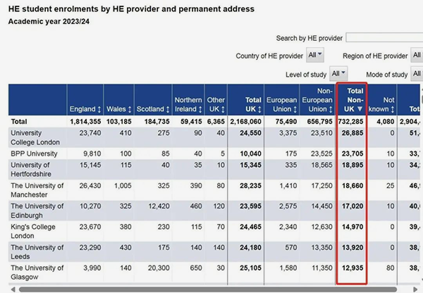 英国大学23/24学年入学数据公布!中国留学生数量超16万