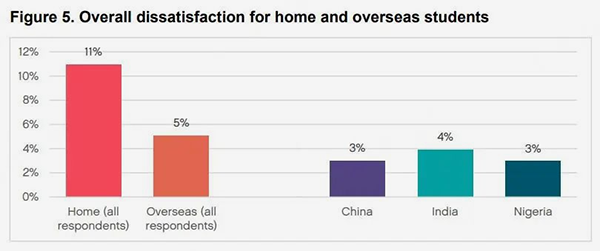 对英国授课型硕士表示“不满意”的留学生占比为5%,其中中国留学生仅为3%。