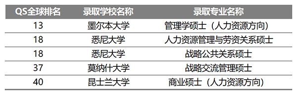 目前学生已成功被澳洲墨尔本大学、悉尼大学、莫纳什大学、昆士兰大学录取,其中莫纳什大学、昆士兰大学会免除雅思条件,意味着将来即使没有考出雅思6.5分,学生也能稳妥的直入前球50强。