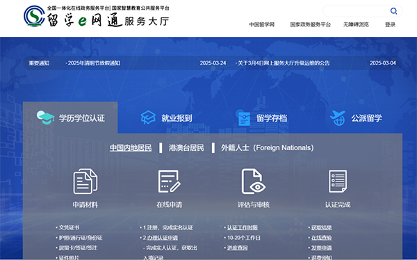 《国(境)外学历学位认证申请材料》官方查询: