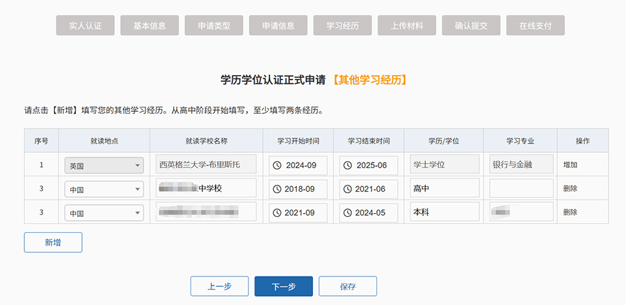四、填写学历学位信息