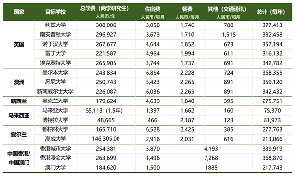 海外研究生费用清单
