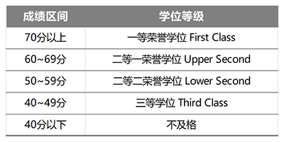 要想成功获得2:1学位,首先就要搞懂英国本科的评分体系,如下所示: