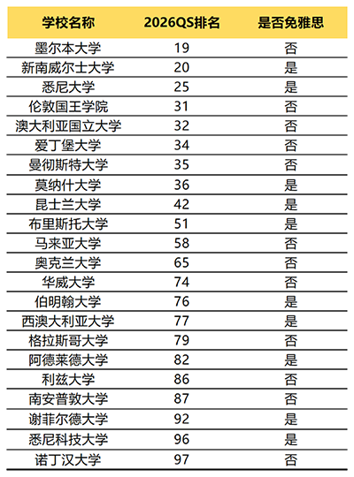 以上为全球前百名校对我院学生的免雅思情况。除此之外,QS100-200名的学校中,80%左右目前也都可减免雅思,且越来越多学校对我院学生实施免雅思政策。例如英国纽卡斯尔大学、利物浦大学,也是从近2年陆续针对我校学生开放免雅思政策,相信以后会争取到更多学校开放雅思条件。