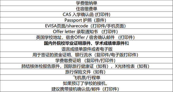 ①各种重要文件,比如护照,CAS,国内学术材料,语言成绩单等,一定要随身携带并且手机里面存几个备份,以备不时之需。具体文件清单可参考下图。