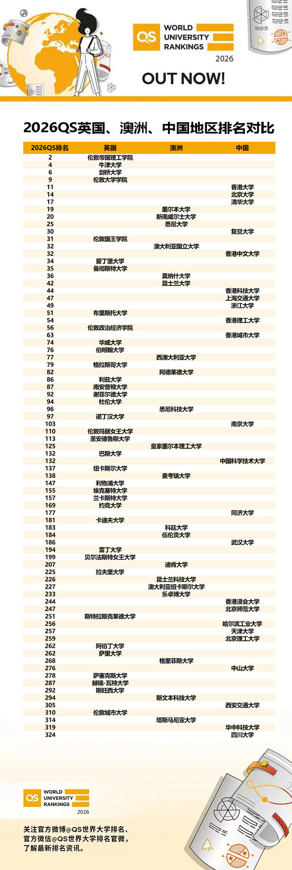 除了官方认可,社会认可度也是家长和学生判断硕士是否“水” 的重要参考因素。读书的最终目的,大多是为了更好地就业。如果就业单位认可你所持有的海外学位,且这个学位确实帮助你在求职竞争中成功拿下心仪岗位,那么这份海外硕士学历就获得了社会层面的认可,自然不能被贴上 “水硕” 的标签,不是吗?大家可以参考下方的院校排名对比,我们建议大家结合自身背景,尽量选择排名靠前的院校,这类院校的社会认可度通常会更高。