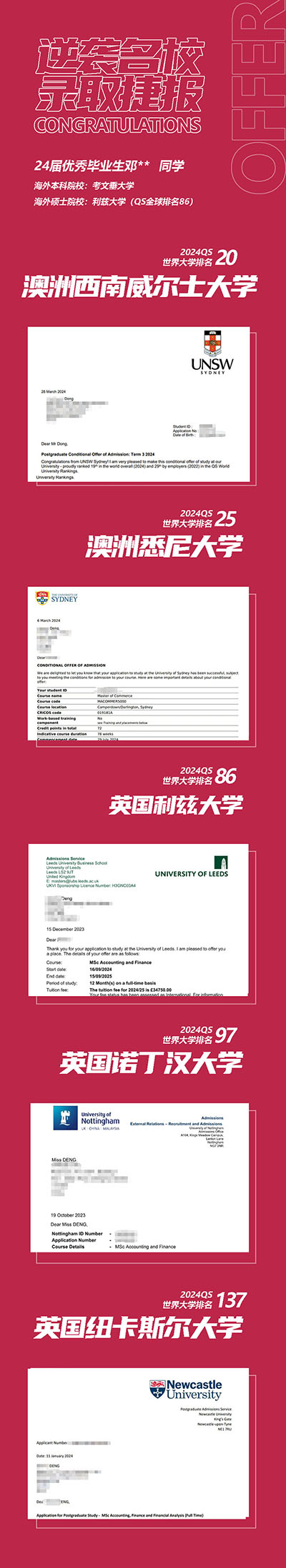 邓同学硕士录取Offer展示