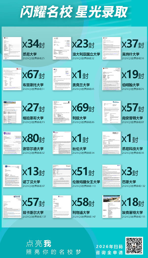 俯仰之间,2025年已接近尾声,我们即将迎来2026年。新旧交替之际,回顾2026年我们第一阶段的申请结果,在我们和同学们的共同努力下,已然斩获接近700封海外名校的研究生录取,且其中50%的offer来自QS世界排名前一百的院校!