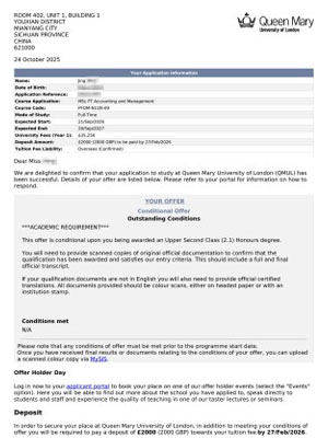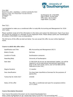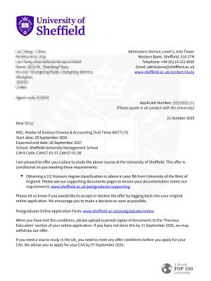 经过综合对比,最终为她推荐了英国西英格兰大学商务管理会计与金融专业(BMAF) —— 这一决策也成为她后续斩获多所 QS 前百名校 offer 的关键铺垫。