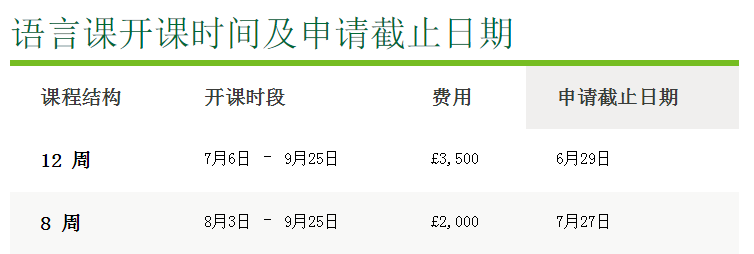l 约克大学——所有语言课程的学费降低25%;通过20周(已截止申请)、15周或10周学前英语课程升入正课学习的学生,可以享受正课学费每学年10%的折扣(涵盖本科,硕士及博士课程)。