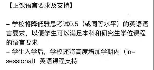 并且,官方表明将会重新评估已经提交的语言成绩,也就是说,如果是符合降低0.5分的成绩,将直接更改确认学生达到了录取要求。