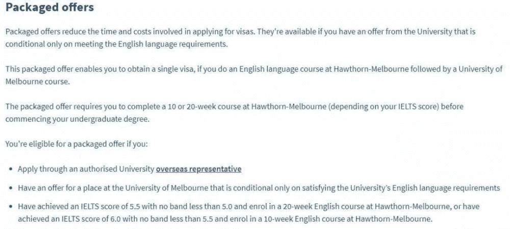 墨大开设了20周的语言班,packaged offer也放宽了最低雅思要求,现在只需要达到总分5.5,小分5就可以录取。