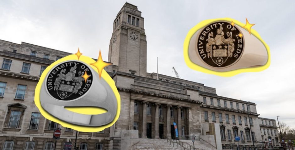 利兹大学的毕业纪念品也是印章戒指,可以说这是我见过的最前卫的利兹毕业纪念品。例如,你的统一徽章现在可以有金银印章戒指了,它们非常适合那些时尚前卫的学生。对于那些认为从工会购买一件30磅重的羊毛衫或套头衫且打扮过于主流的同学来说,不如拥有一枚戒指使得自己与众不同。