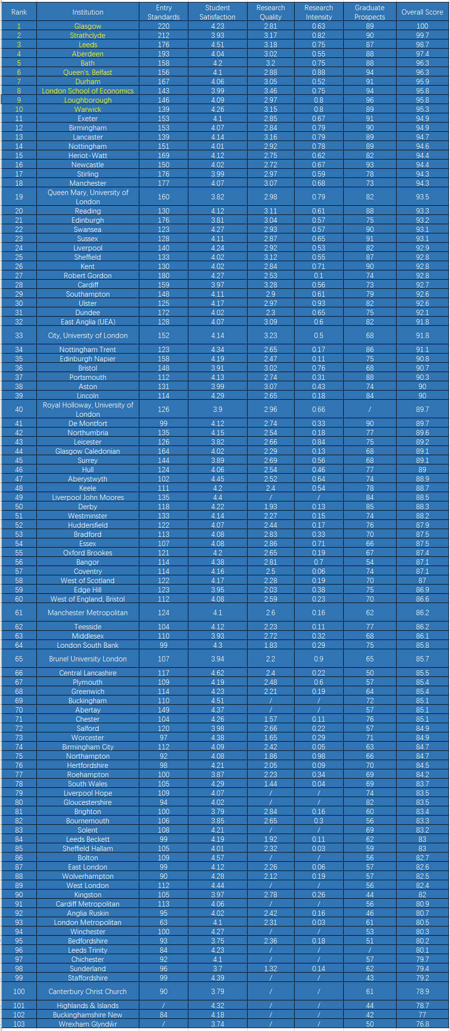 注:《完全大学指南》中的排名基于疫情开始之前的数据,因此此次排名指标没有参考到疫情期间大学的表现。