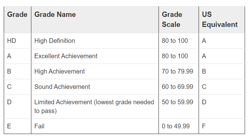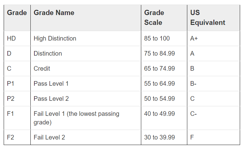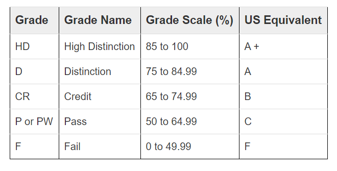 请注意澳洲大学专业课程的及格分数是50分,毕业成绩如果在50分以下,就拿不到学位了,所以留学期间对自己的每一门专业课程作业和考试都要认真对待,千万不要出现学术舞弊等情况。
