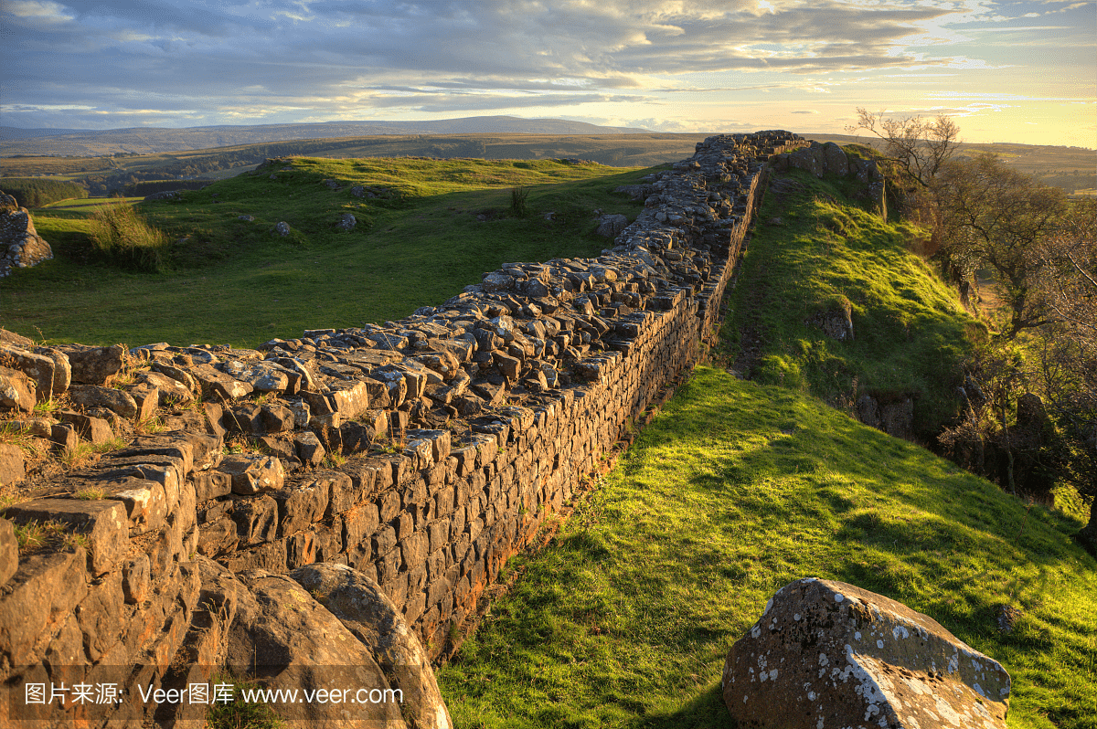 哈德良长城:哈德良墙,2000年前为分隔苏格兰罗马人和皮克特人部落而建造的石墙屏障。它允许罗马士兵控制人们进出罗马不列颠的行动。它建得很好,今天你还能看到它的一