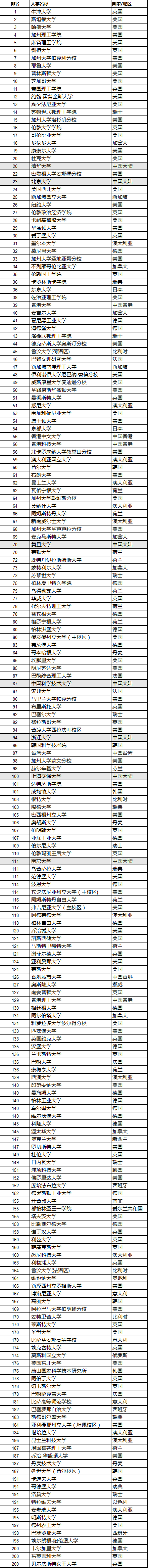 英国G5名校中,牛津大学保持第一位!剑桥大学从去年的第3位下降到第6位,帝国理工下降一名,跌出前10,UCL下降一名,LSE与去年持平。进入前100名的英国大学名单与去年一致,排名有升降微调。