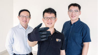 InfinityGlove™是由国立大学研究人员团队(由Lim Chwee Teck教授领导)开发的(左)。研究团队的两名成员是Yeo Joo Chuan博士(中)和Yu Longteng博士(右)。