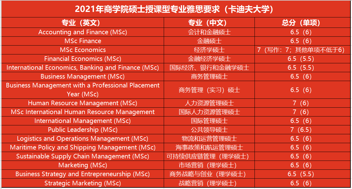④2021年商学院硕士授课型专业雅思要求一览表
