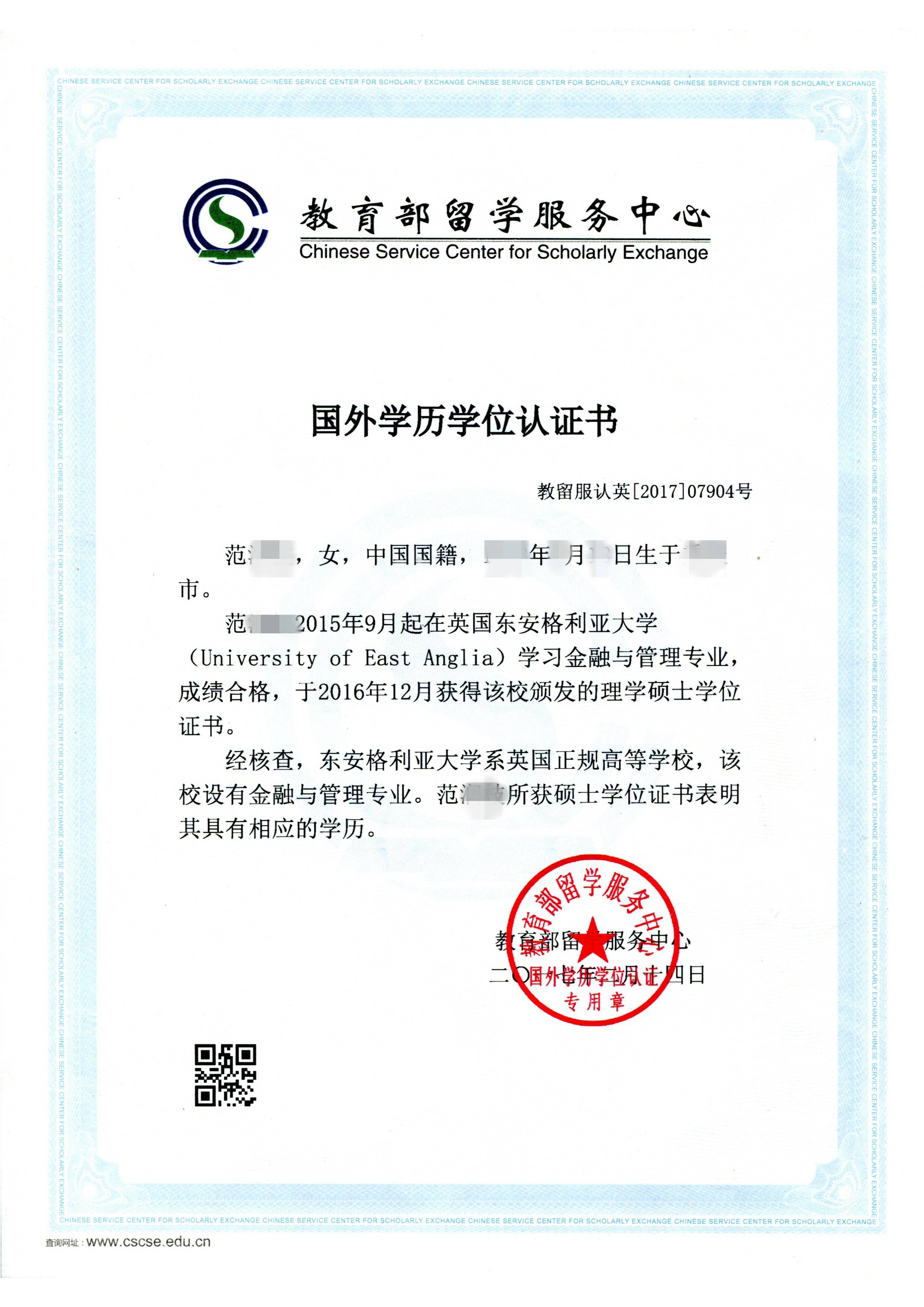 国(境)外学历学位认证:中国留学服务中心根据归国留学生提出的申请,