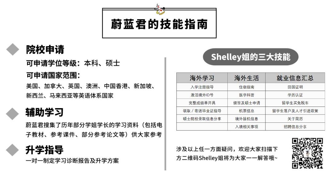 注:不同学院不同课程对不同学术背景的同学录取要求也会不一样,详情咨询Shelley姐。