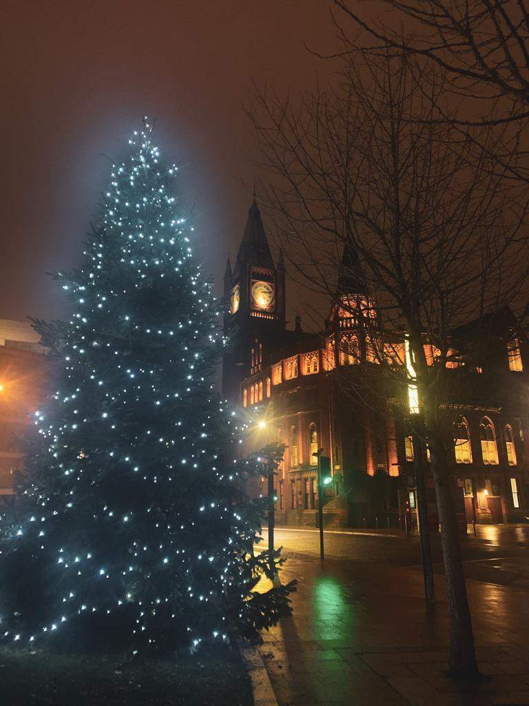 诺丁汉的这颗树,从远处看就像一顶的帽子,头顶上还有一颗星星,圣诞树顶上为什么要挂一颗星星呢?传说耶酥能给人类带来温暖,人们就把天上最亮的一颗星星看着为“耶酥”