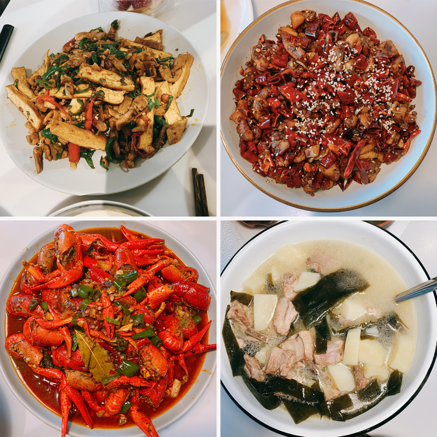 何学姐厨艺展示(豆干炒肉,干锅兔,麻辣小龙虾,海带山药炖鸡)