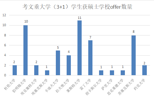 从考文垂大学3+1学生获得的学校offer数量,可以看到,莱斯特大学、