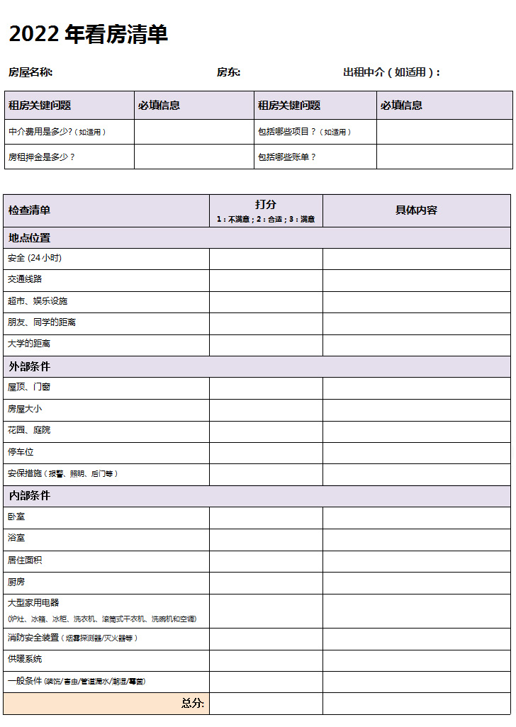 接下来,Shelley姐为大家准备了一份留学生需要的看房清单,列举了一些关键的租房问题和看房需要注意的项目,同学们可以根据这份看房清单,找到自己心仪的留学房子。