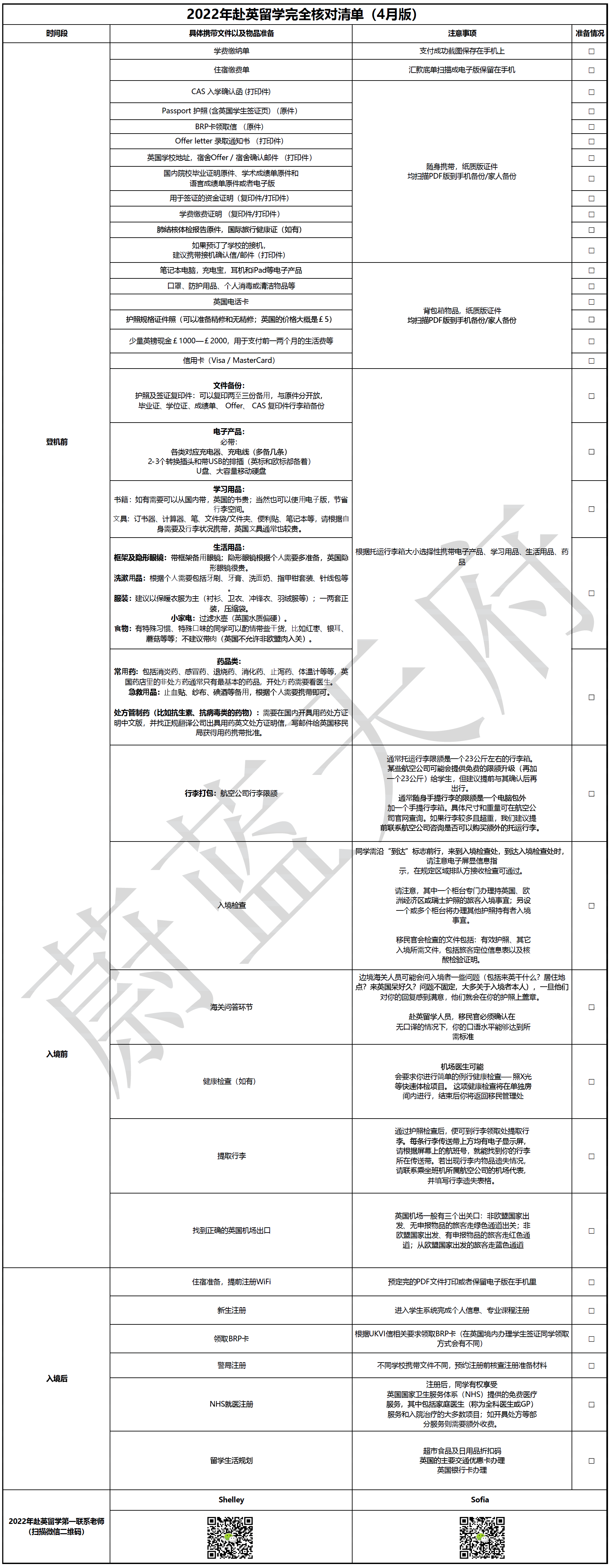 与此同时,即将入境英国留学的同学,PQP老师为赴英留学同学准备的物品清单如下: