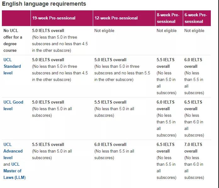 UCL的雅思要求总体分为Standard、Good、Advanced、IOE Special level这四个档位: