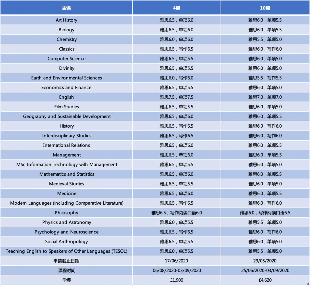 主课要求雅思6.5(写作6.其他单项5.5)