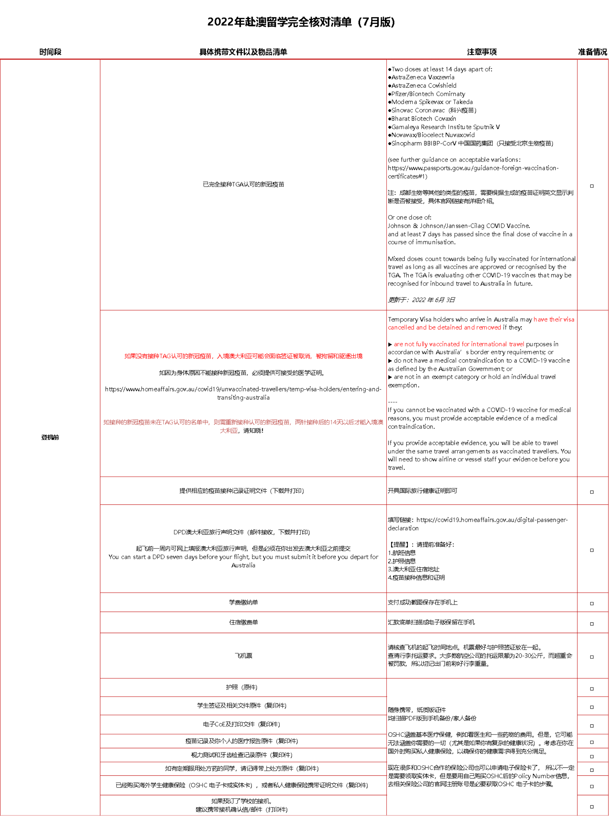 360°和24小时服务之入境澳大利亚行前须知(2022年6月版)