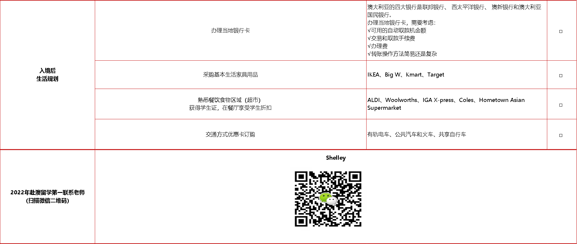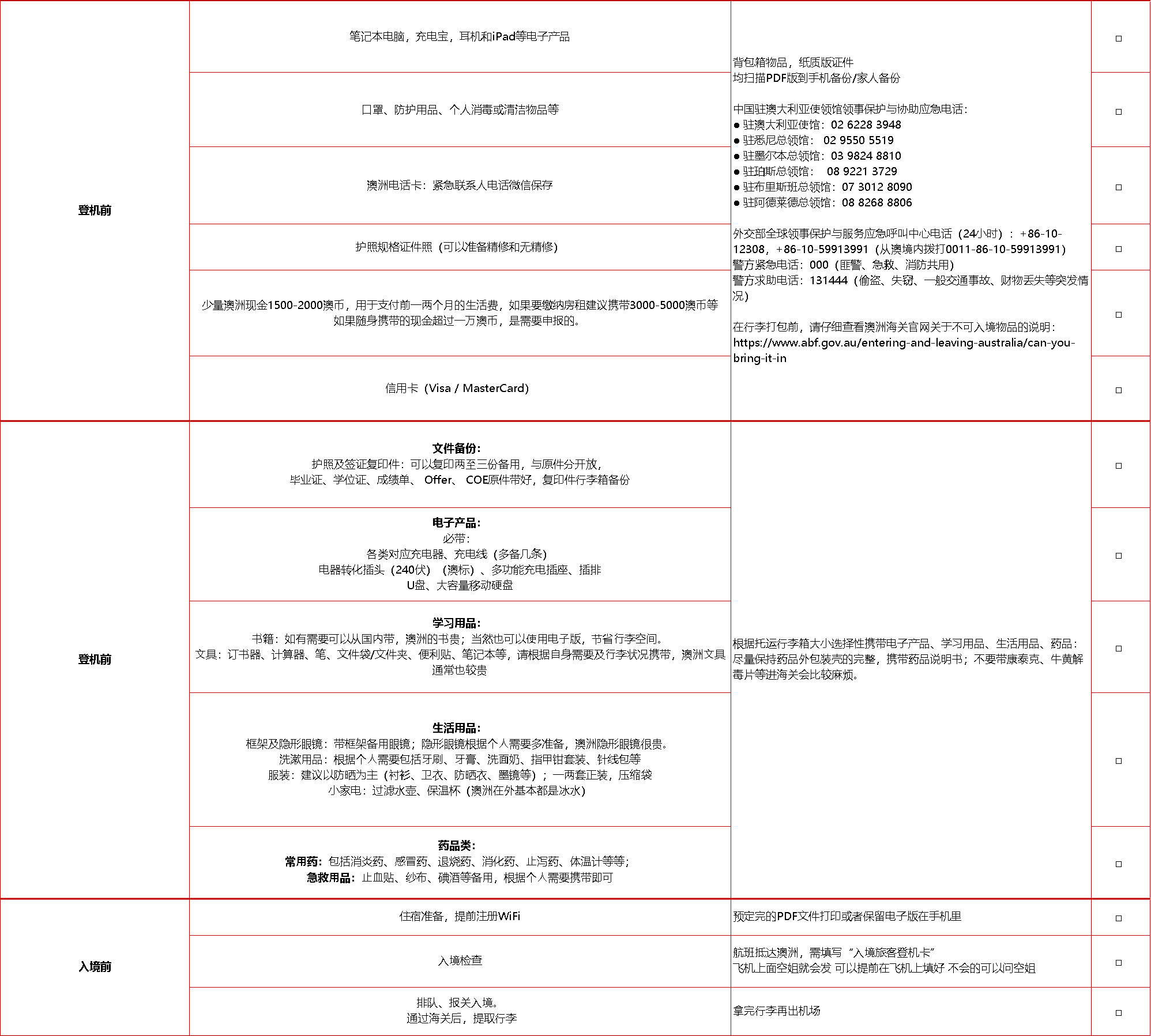 与此同时,蔚蓝天府老师为即将入境澳大利亚留学的同学,准备了实用物品清单如下,同学可参考整理赴澳行李: