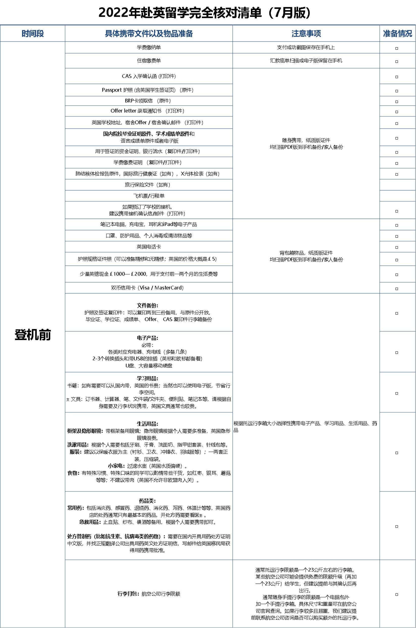 360°和24小时服务之入境英国完全行李准备清单(2022年7月版)
