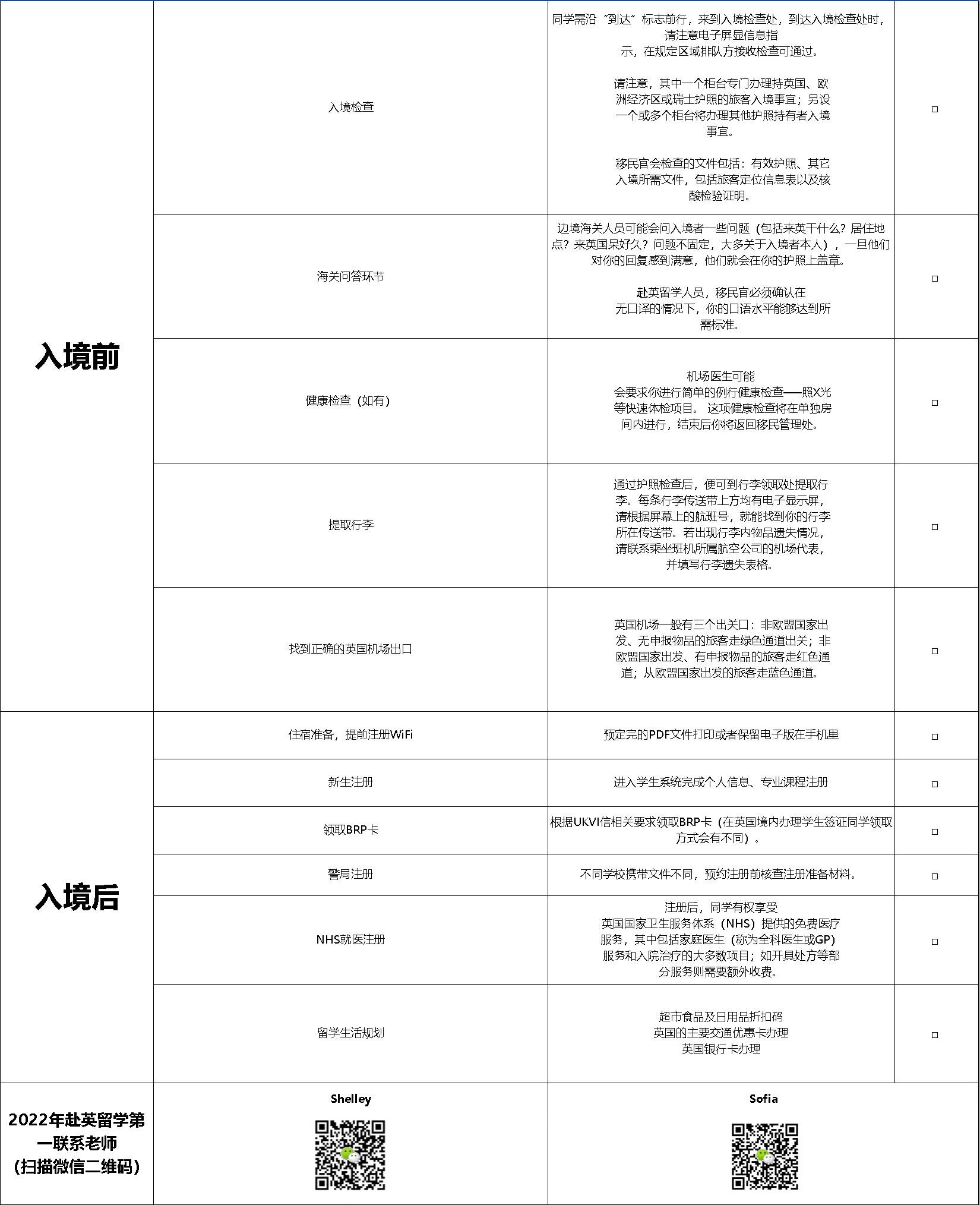 蔚蓝天府老师一直关注英国政府最新入境信息,为同学梳理告知最及时的入境携带重要材料文件,和相关携带物品建议。