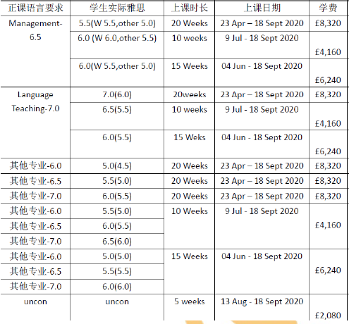 2020年英国名校(QS前200)语言班开课时间、语言要求汇总!part3