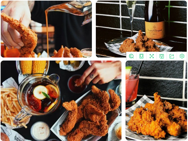 香槟配炸鸡,格调拉满。油而不腻,肉质细嫩,还能吃到鸡肉三明治哦!