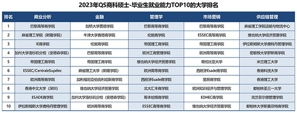 2023年QS商科硕士专业排名发布-毕业生就业能力TOP10的大学盘点